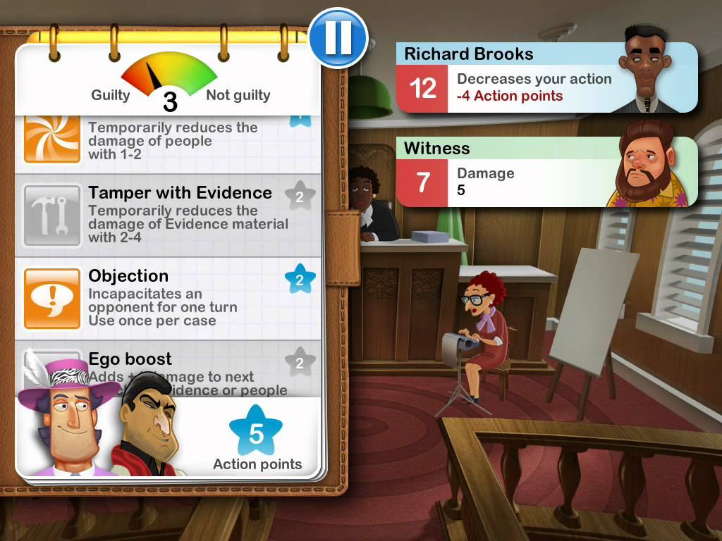 AppSmile wrote "Chock full of humor and RPGish elements, Devil's Attorney is cleverly entertaining and a real treat for mobile gamers. " AppAdvice wrote "This universal game is witty, entertaining, and engaging. It looks great, has interesting dialog and offers challenging turn-based strategy gaming that will keep you playing for hours. " Gamezebo said "One could say that not playing it would be criminal. And should you be accused of such a felony, I can only hope a lawyer as corrupt as Max McMann is serving as prosecutor." Slidetoplay said "Devil's Attorney is a hilarious spoof of courtroom dramas, with a roguish hero who wins every case by being unscrupulous. " 148apps said "The artwork is very polished and the storyline is original and witty. There is a lot of funny banter between the attorneys at the beginning of each round and it's almost as if the developers hired a screenplay writer to write all the content. " Toucharcade said "Like Capcom's courtroom drama, Devil's Attorney is an addictive puzzler whose courtroom metaphor for battle makes for one of the most unique and absorbing games you'll find on mobile or any other platform. " Games Master UK said "It's a compulsive and occasionally funny ride, but the battles become a tad repetitive."